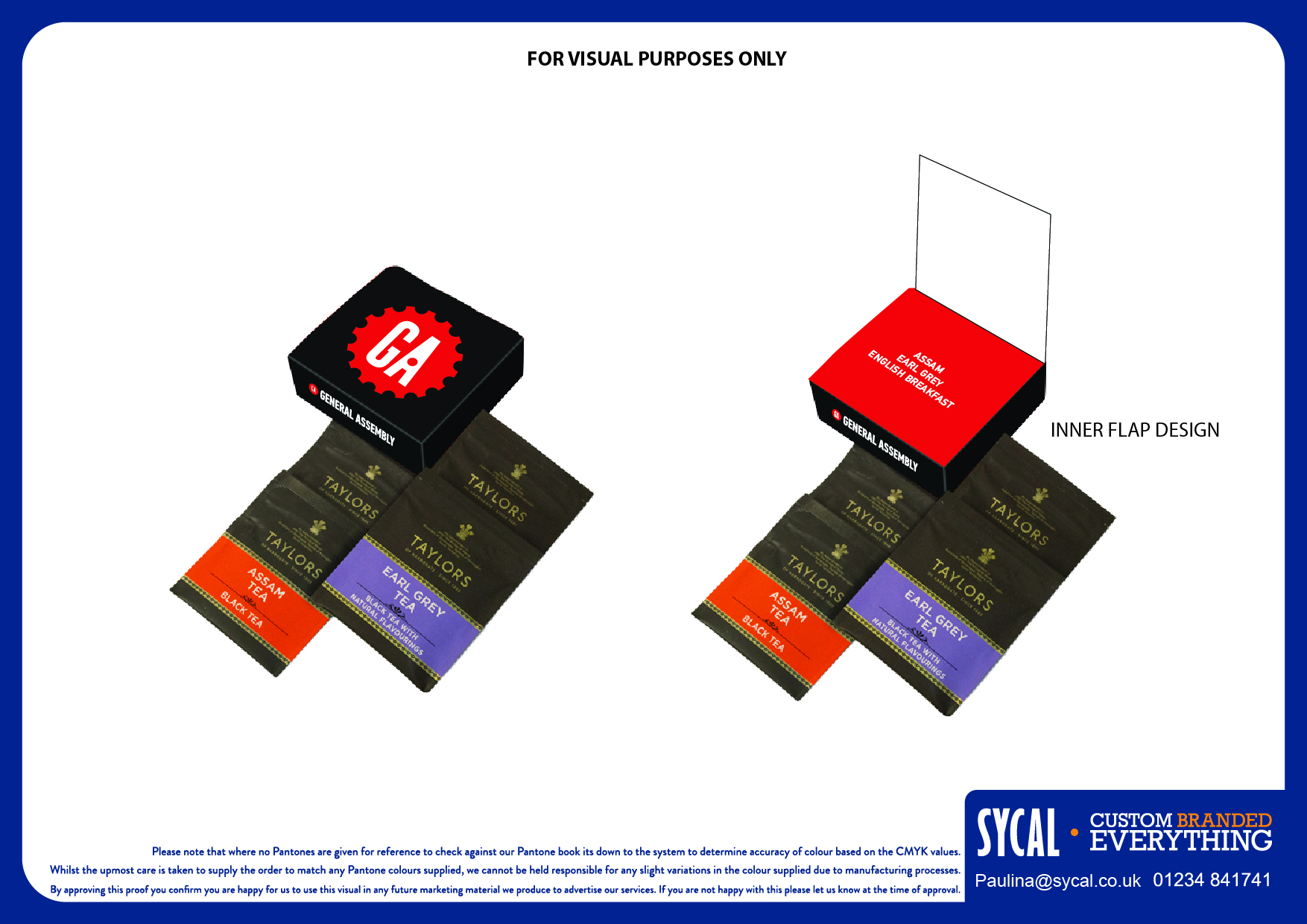 Initially, we collated a range of products and produced a set of inspirational visuals branded with the client’s logo and colour scheme. These visuals included bespoke designs, created by our in-house design team, to communicate the possibilities the client could achieve with different print methods.
